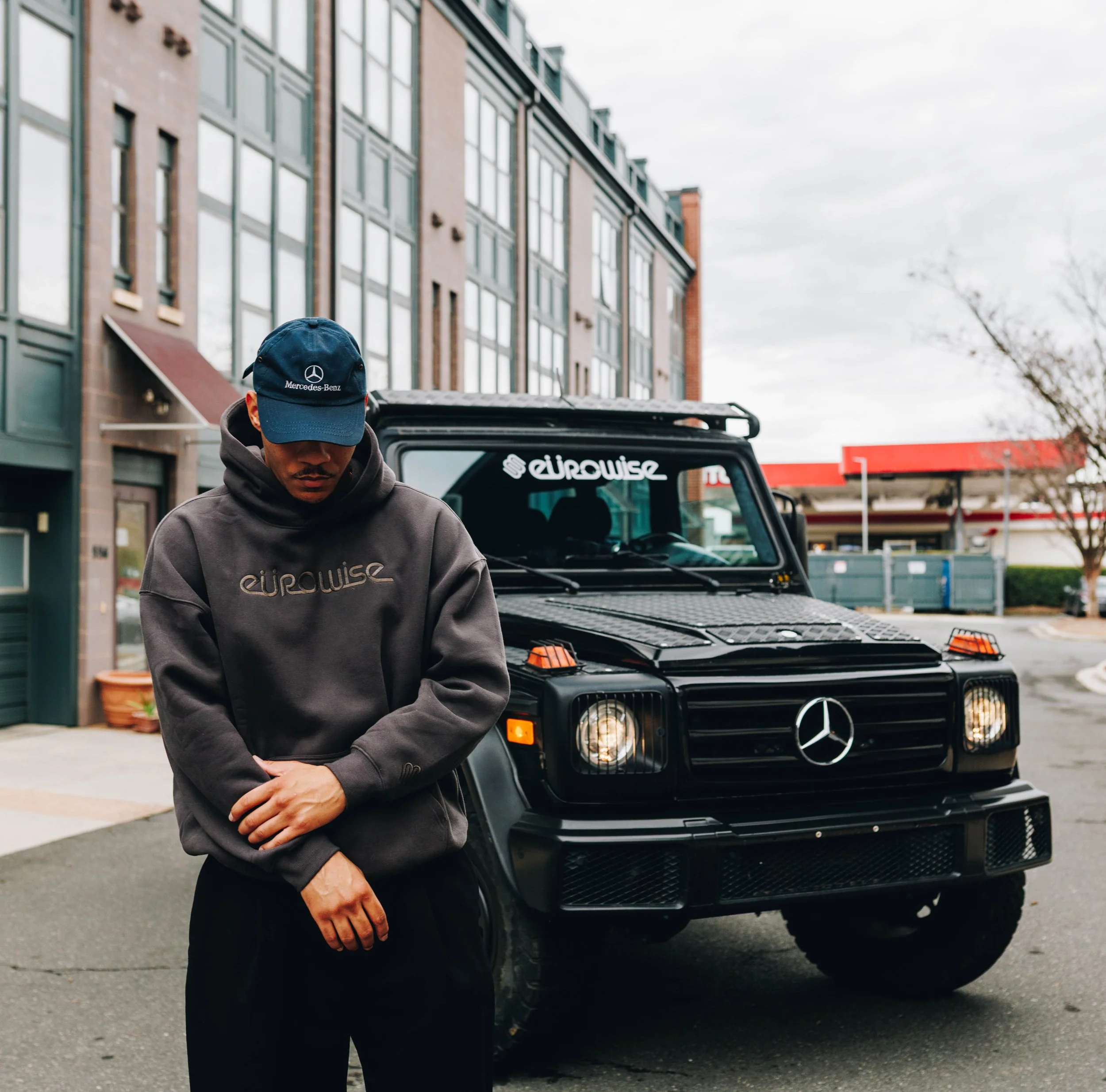 The Eurowise hoodie paired with wide black trousers and simple footwear gave the look a balanced mix of streetwear and automotive lifestyle. Nothing overly styled, just pieces that feel natural around the truck and the environment.