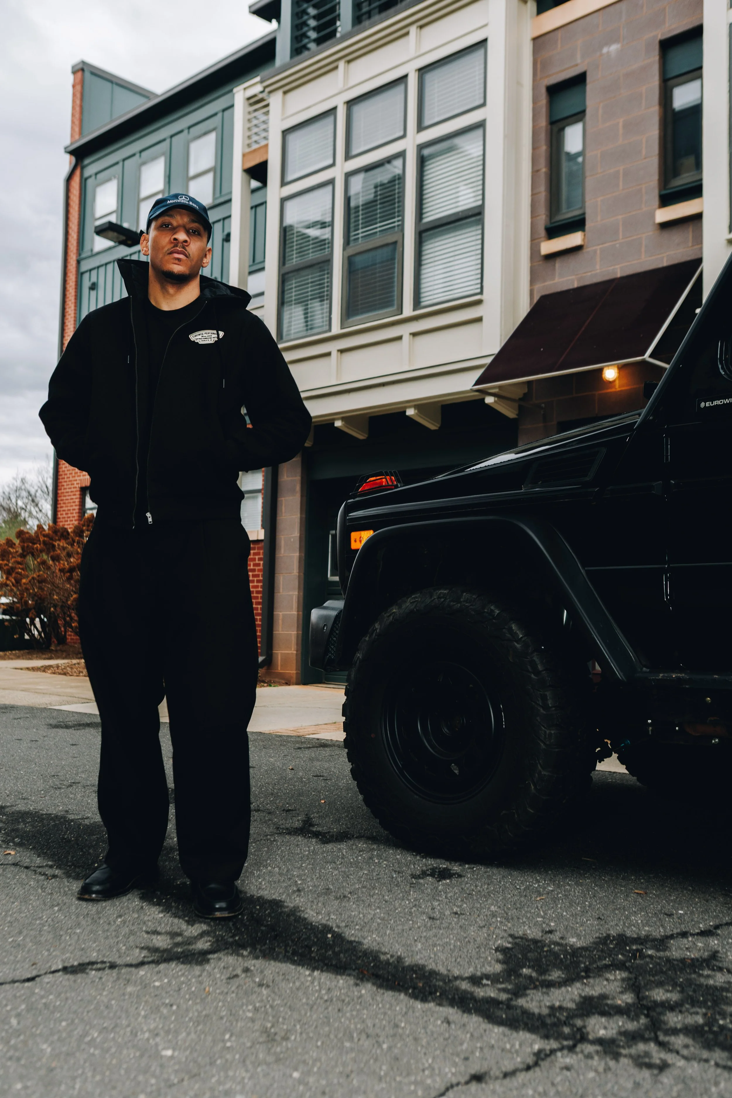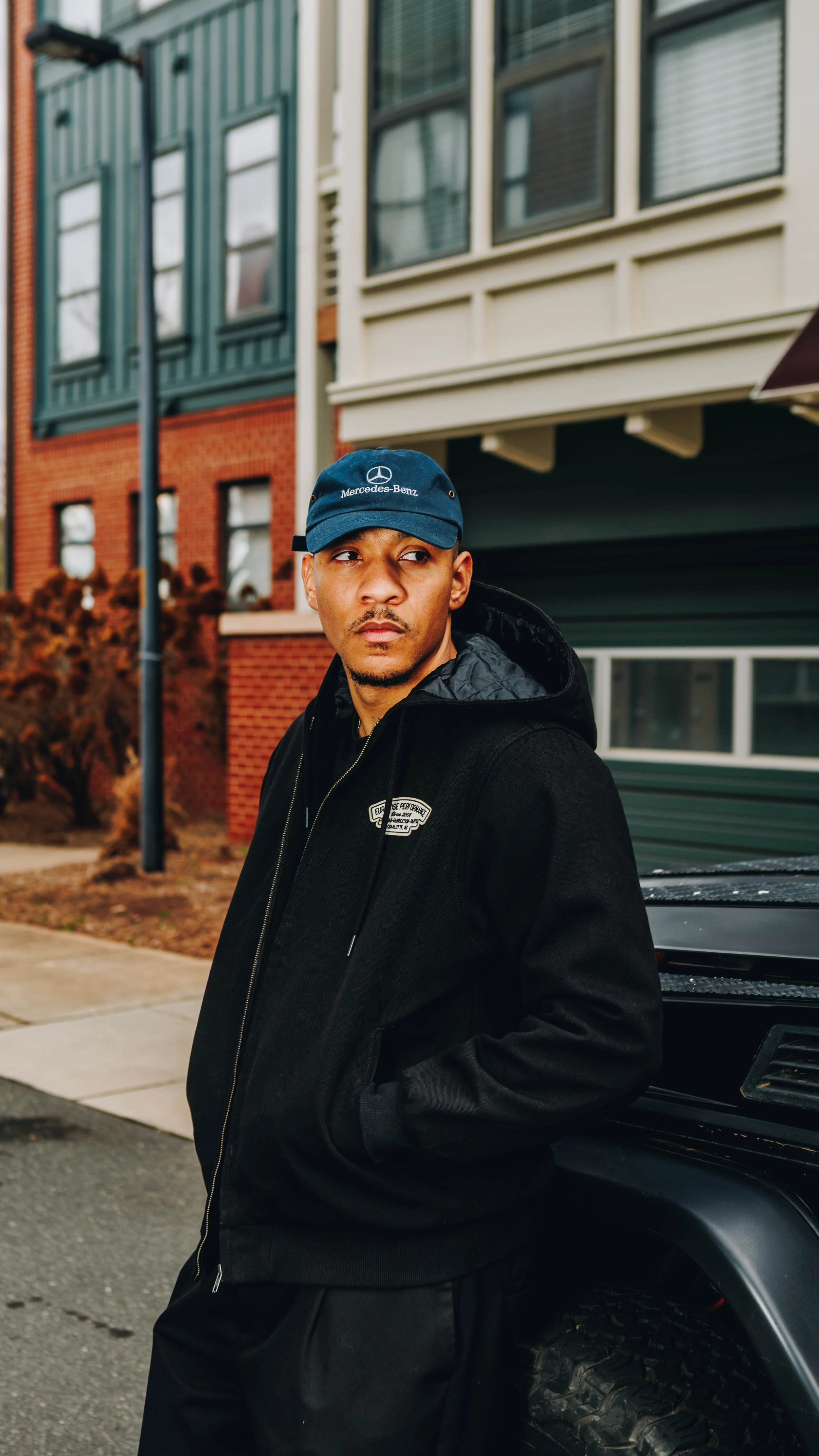 The townhome setting gave the shoot an urban feel, while the brick and residential architecture added warmth and texture that played nicely against the dark tones of the G-Wagon and the clothing.
